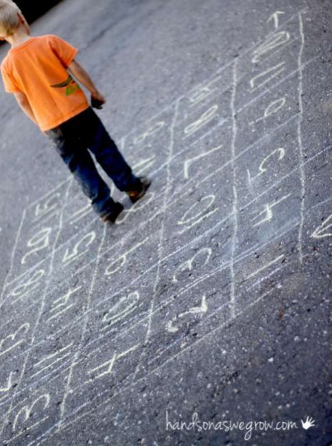 All you need for this one is some chalk for the driveway or masking tape if you want to do it indoors. Just draw a big grid, write the numbers 1-20 throughout the squares and get them to hop or jump through them in order. Randomising it completely is probably a bit too difficult, so try and place each number near or connecting to the previous in some way.